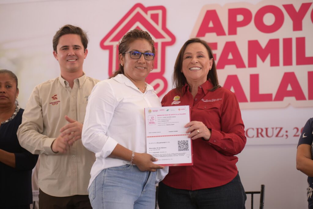 En la Unidad Deportiva ESBIO de San Andrés Tuxtla, la Mandataria encabezó el arranque y primera entrega de los programas Apoyo a la Palabra y Apoyo a la Familia, estrategia conjunta de la Secretaría de Desarrollo Social y el Sistema Estatal DIF que, en 2026, se extenderá a 112 municipios con una inversión global de 200 millones de pesos.