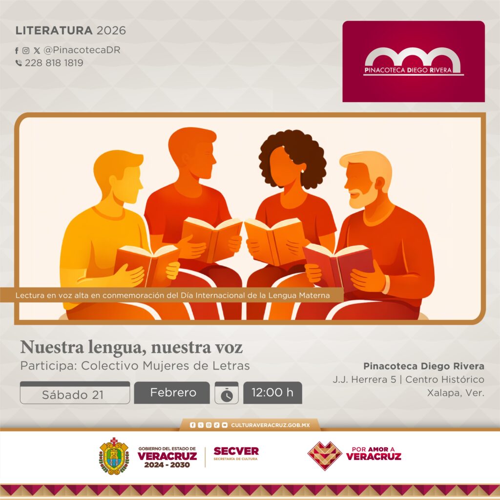 En conmemoración del Día Internacional de la Lengua Materna, el sábado 21 de febrero, a las 12:00 horas, se realizará la lectura en voz alta Nuestra lengua, nuestra voz, con la participación del Colectivo Mujeres de Letras, cuyos integrantes compartirán textos que celebran la diversidad lingüística y cultural.