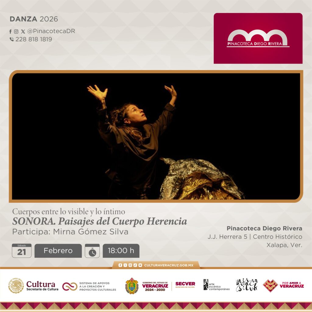 Xalapa, Ver., viernes 20 de febrero de 2026.- La Secretaría de Cultura de Veracruz (SECVER) invita al público en general a disfrutar de la programación cultural de la Pinacoteca Diego Rivera durante este fin de semana. Las actividades integran artes visuales, danza, música, literatura y propuestas inclusivas que invitan a reflexionar sobre el cuerpo, la identidad, la memoria y las múltiples formas de lo sensible.