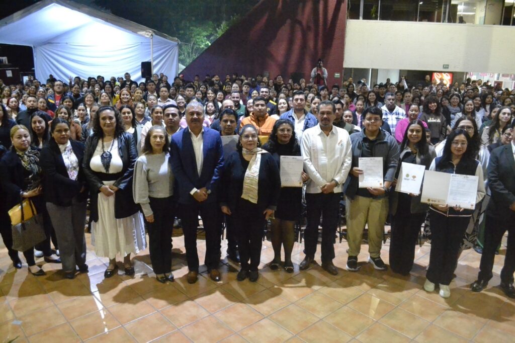 Participaron en esta entrega los secretarios generales de la Sección 32 del Sindicato Nacional de Trabajadores de la Educación, Daniel Covarrubias López, y de la Sección 56, José Reveriano Marín Hernández, así como autoridades educativas.