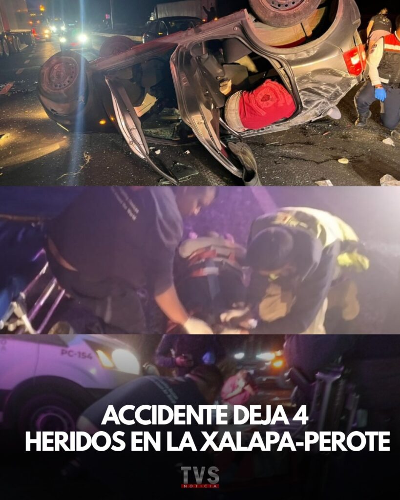Emiliano Zapata, Ver.– Cuatro personas resultaron lesionadas la noche de este domingo tras la volcadura de un automóvil sobre la autopista Xalapa–Perote en el municipio de Emiliano Zapata, Veracruz.