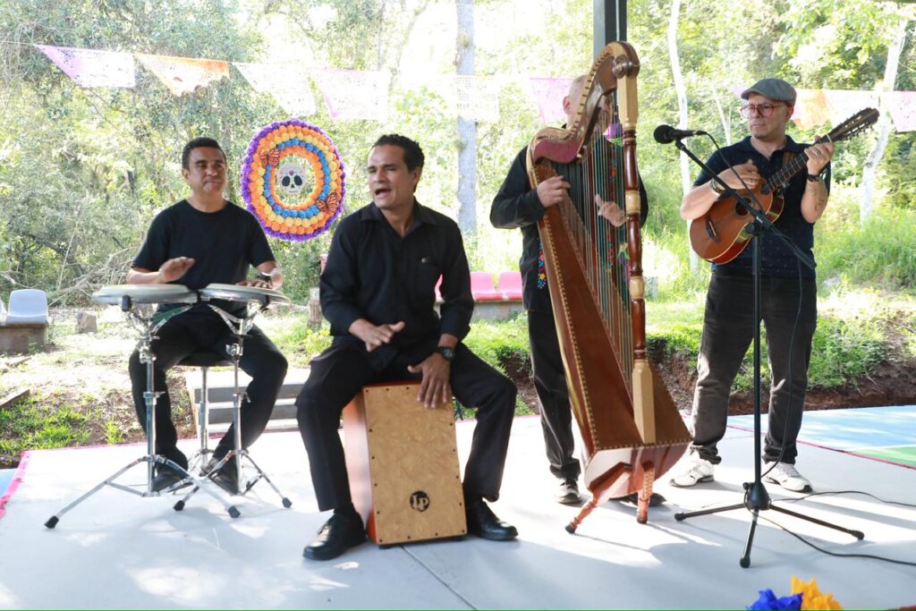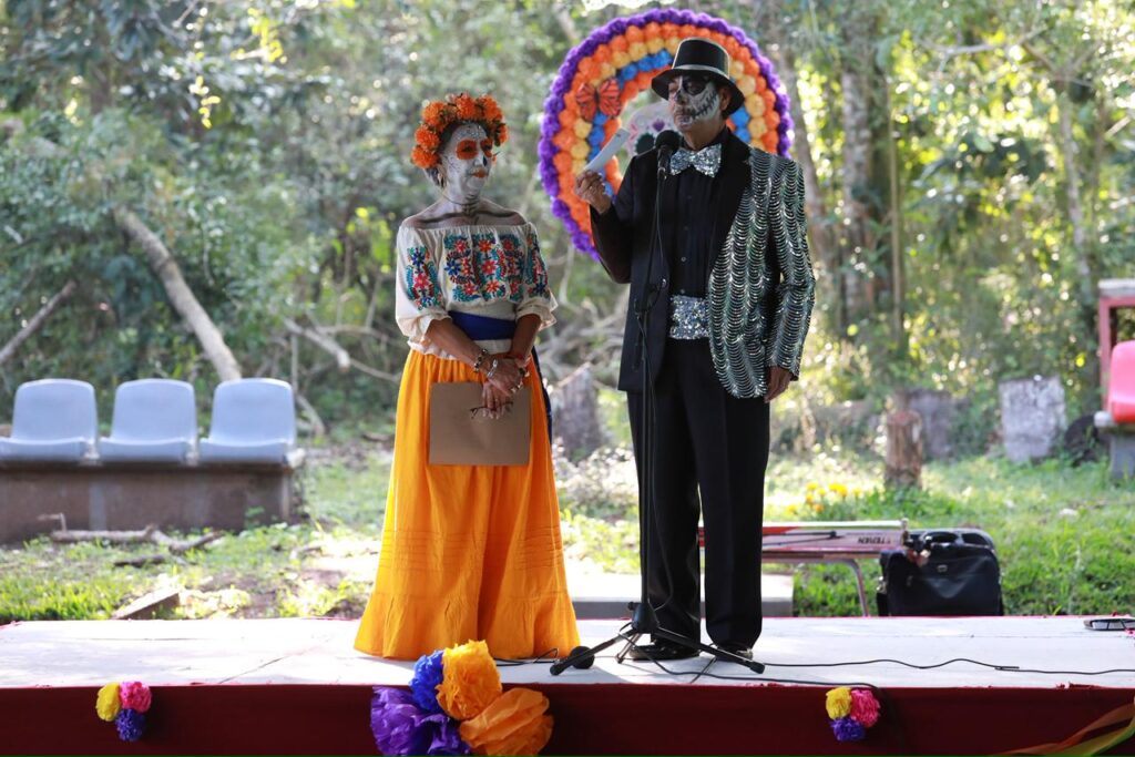 Xalapa, Ver., martes 28 de octubre de 2025.- En el marco del cuarto Festival de Día de Muertos de la Estancia Garnica, el Instituto de Pensiones del Estado (IPE) inauguró el techado de la cancha principal, espacio destinado a talleres, actividades recreativas y deportivas para las y los pensionados veracruzanos.
