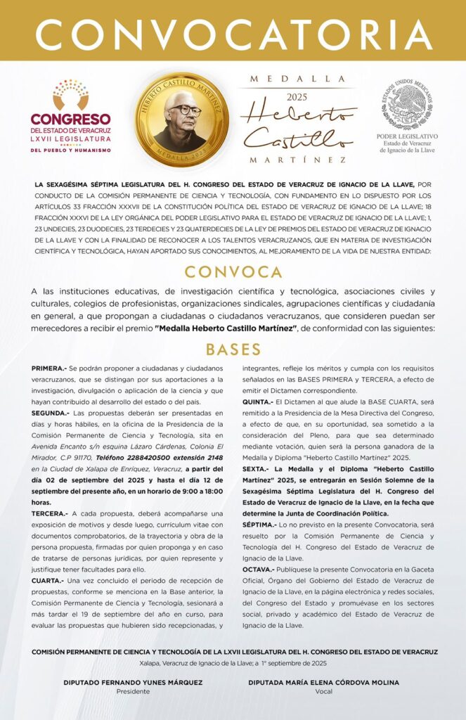 Veracruz, el Congreso del Estado, por conducto de la Comisión Permanente de Ciencia y