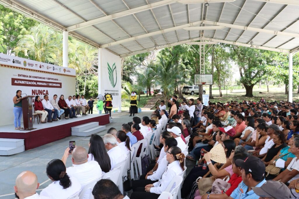 La entrega se realizó en el Instituto Tecnológico Superior de San Andrés Tuxtla, con la participación de autoridades educativas, federales y municipales, quienes destacaron los avances del programa Nunca es tarde para aprender, coordinado por la SEV en conjunto con el Instituto Veracruzano de Educación para los Adultos (IVEA).