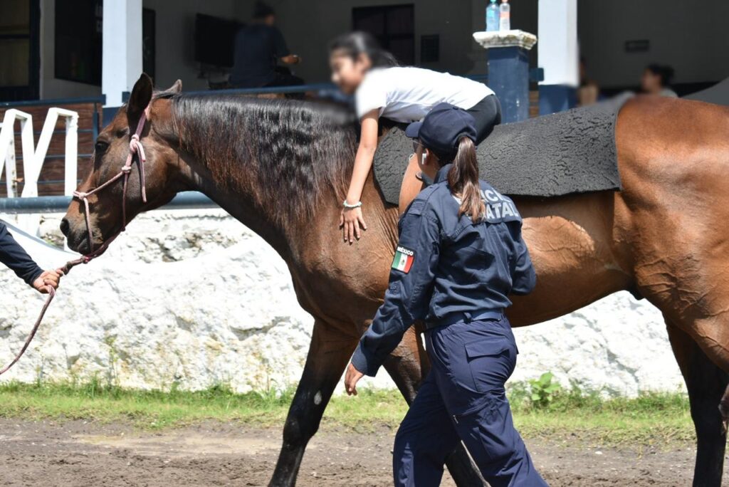 Xalapa, Ver., miércoles 03 de diciembre del 2025.- En el marco del Día Internacional de las Personas con Discapacidad y como parte de las acciones de atención a la ciudadanía, la Secretaría de Seguridad Pública (SSP), a través de la Unidad Montada de Policía Estatal, impulsa de manera gratuita el programa integral de terapias asistidas con caballos, conocida como equinoterapia.