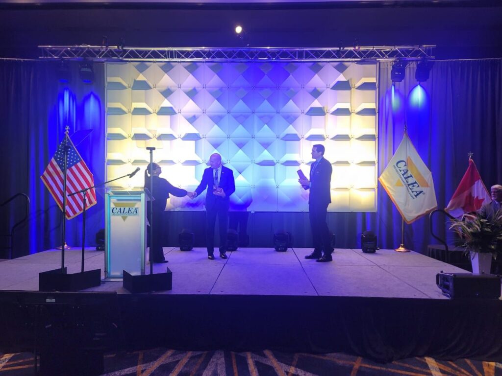 Xalapa, Ver., miércoles 19 de noviembre del 2025.- La Secretaría de Seguridad Pública (SSP) obtuvo la acreditación en el Programa de Aplicación de la Ley de CALEA y el reconocimiento por excelencia Triple Arco (Tri-Arc Award), uno de los distintivos internacionales más importantes en materia de seguridad pública, durante la Conferencia de Otoño de CALEA, realizada en Jacksonville, Florida.
