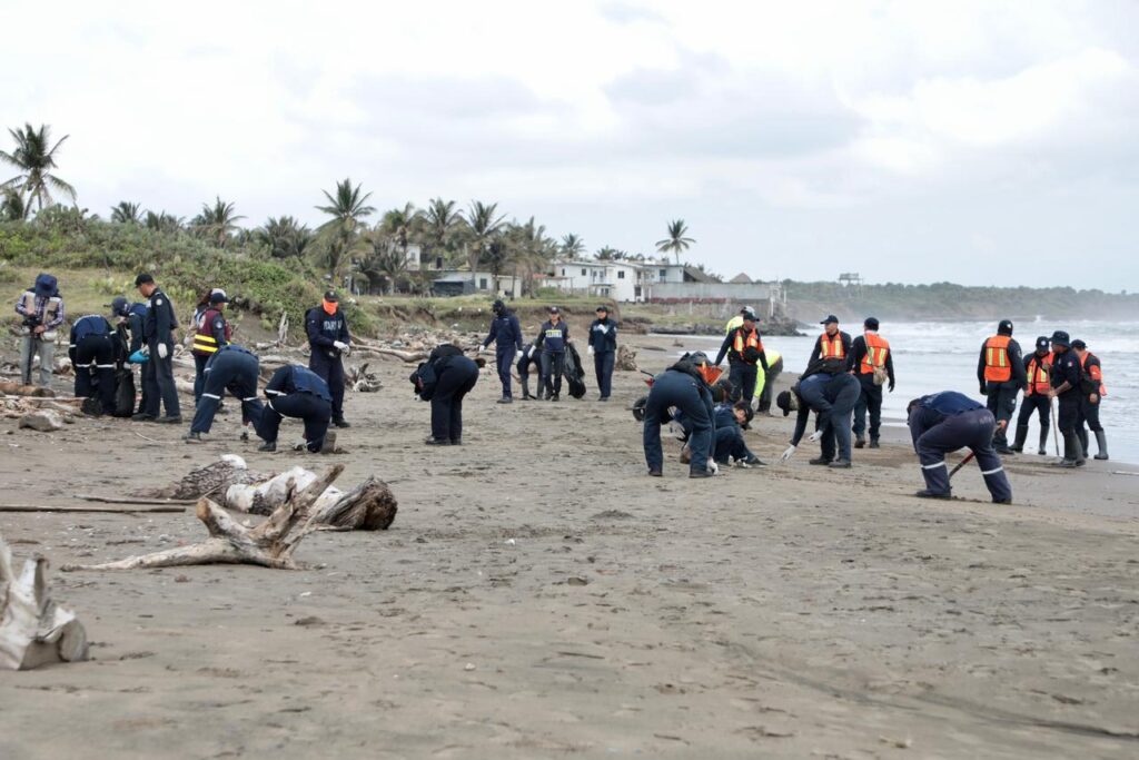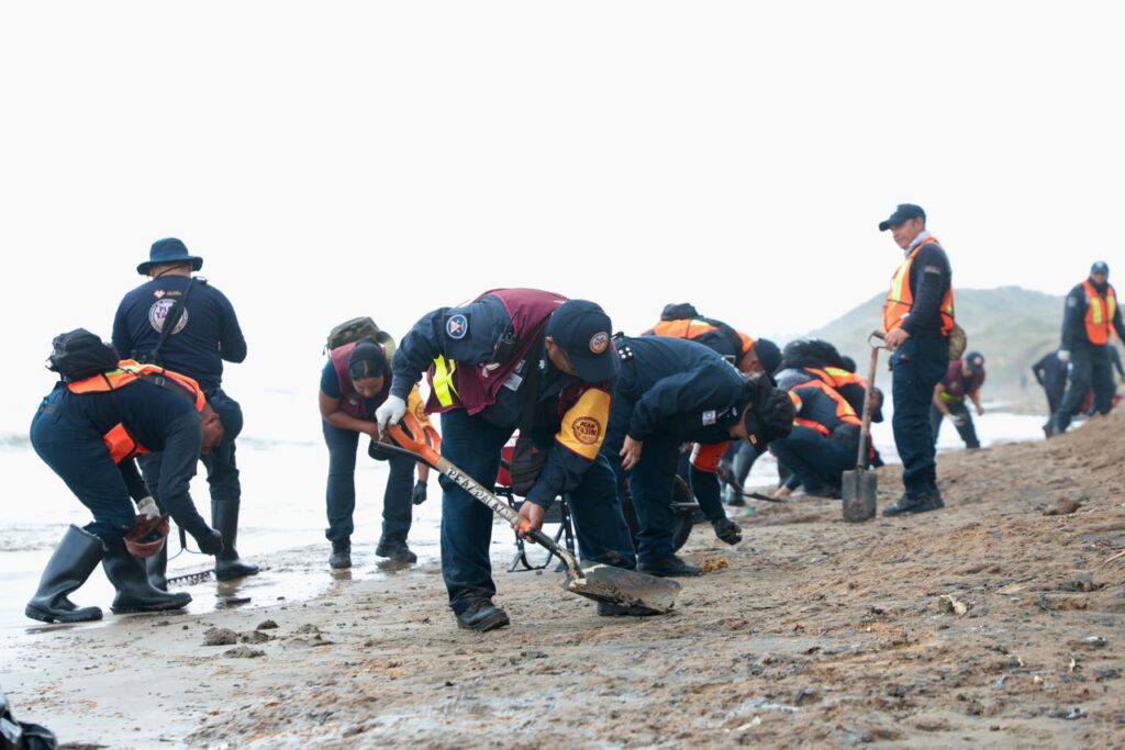 Desde el inicio del arribo de residuos al litoral, brigadas trabajan de manera continua desde temprana hora en distintos puntos, incluyendo las playas La Trocha, La Cava y Salinas, donde se realizan recorridos para la recolección y contención de material.