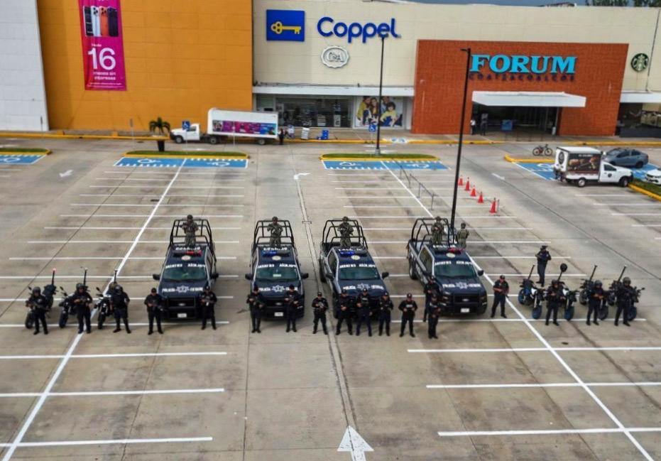 A través de la Estrategia Estatal de Seguridad Pública, alrededor de 800 elementos mantendrán patrullajes permanentes, tanto en unidades como a pie, en plazas comerciales, corredores de alto flujo vehicular e instituciones bancarias, con el fin de inhibir conductas delictivas y brindar atención inmediata a la ciudadanía.