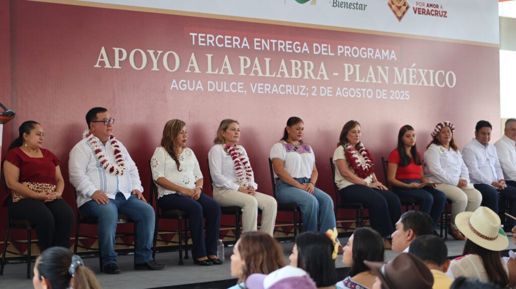Agua Dulce, Ver. – Durante la reciente visita de la Gobernadora del Estado, Ing. Rocío Nahle García, al municipio de Agua Dulce, el alcalde José Noé Castillo Olvera reconoció su compromiso y liderazgo al encabezar la tercera entrega del programa “Apoyo a la Palabra – Plan México”.