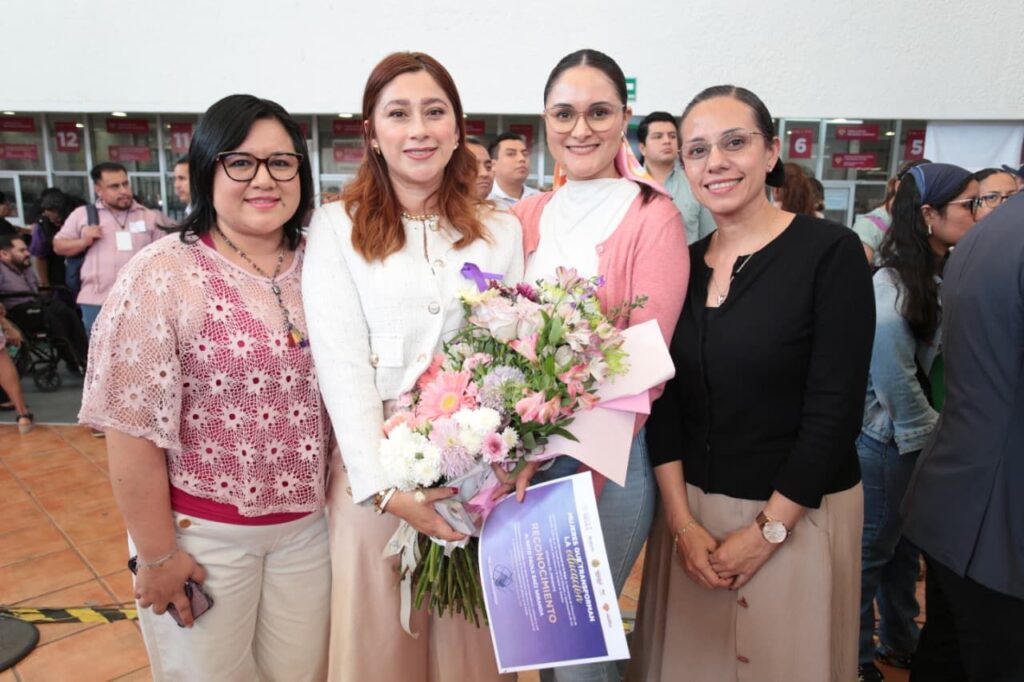 En la explanada de la dependencia, a través de la Coordinación para la Difusión y Optimización de los Servicios Educativos y la Unidad de Género, recibieron el reconocimiento Mujeres que transforman la educación, que distingue el liderazgo, la vocación y el compromiso de las galardonadas.