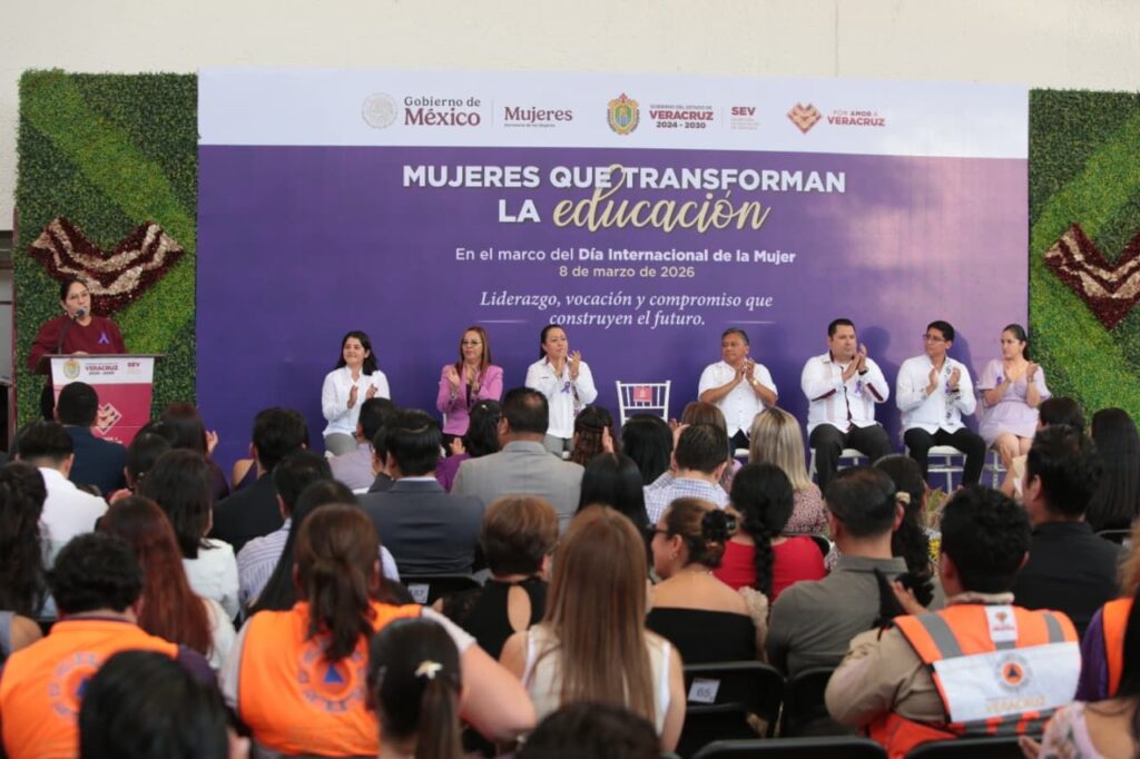 Xalapa, Ver., martes 10 de marzo de 2026.- La Secretaría de Educación de Veracruz (SEV) reconoció a 34 trabajadoras que han contribuido con su labor diaria al fortalecimiento del sistema educativo en la entidad, en beneficio de niñas, niños y jóvenes, en el marco del Día Internacional de la Mujer.