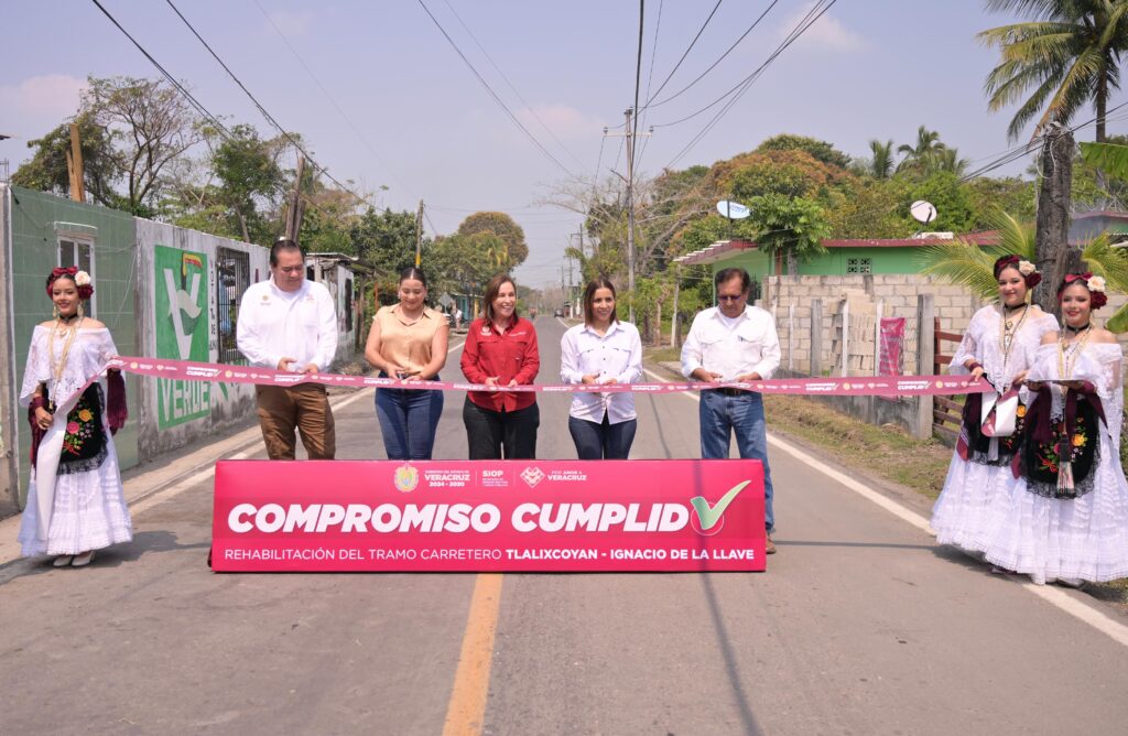 Este fin de semana, acompañada del secretario de Infraestructura y Obras Públicas, Leonardo Cornejo Serrano, y las alcaldesas Malú Santiago Ponce, de Ignacio de la Llave, y Elvia Illescas Loyo, de Tlalixcoyan, así como de pobladores, encabezó el corte del listón inaugural del tramo Ignacio de la Llave–Tlalixcoyan, que marca la conclusión de los trabajos.