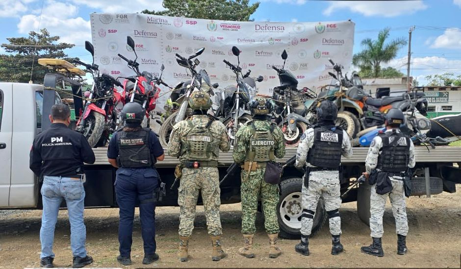 También fueron aseguradas dos armas de fuego cortas y una larga, cargadores, cartuchos útiles, un arma blanca, pipas de vidrio, básculas, botas tácticas, teléfonos móviles, una mochila, autopartes de motocicleta, dos motocicletas con reporte de robo y 19 motocicletas y dos cuatrimotos sin reporte.