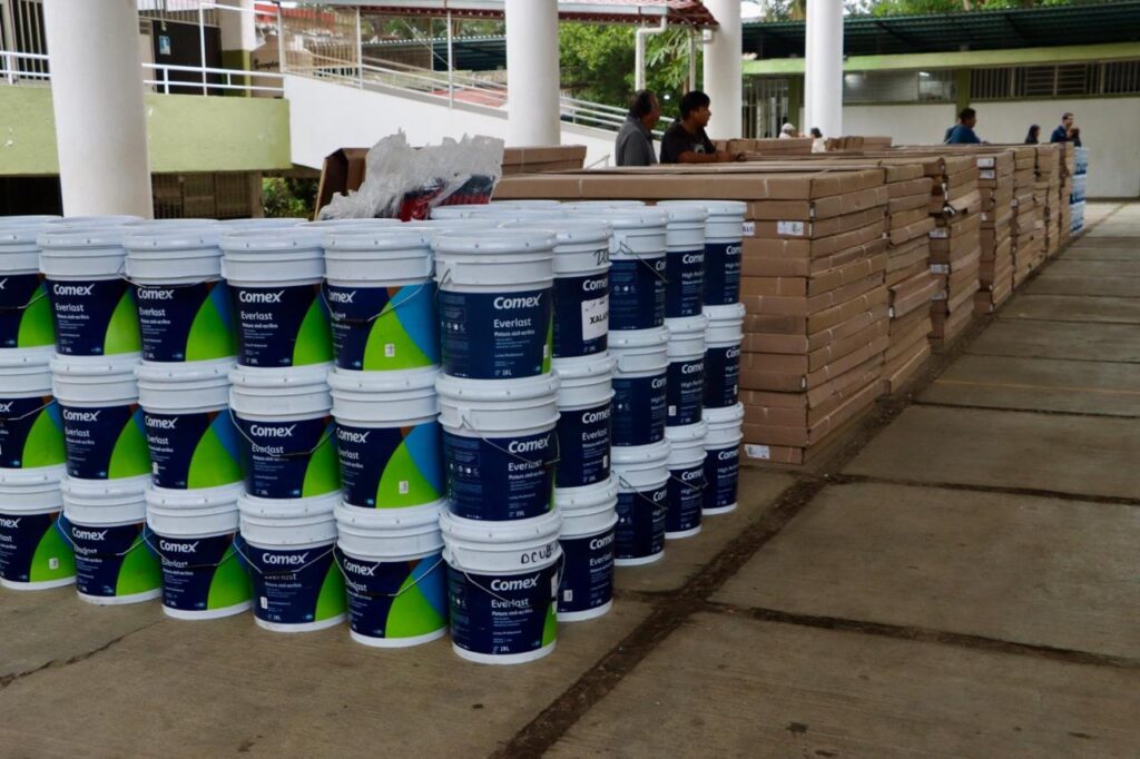 En los dos últimos días, derivado de la estrategia Transformando la Educación se distribuyeron mil 168 sillas, 584 mesas trapezoidales, 629 pizarrones y 766 pantallas de 55 pulgadas, además de dos mil 052 cubetas de pintura, 994 de impermeabilizante y 980 brochas y rodillos, con el objetivo de dignificar los espacios escolares.