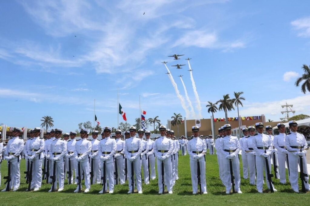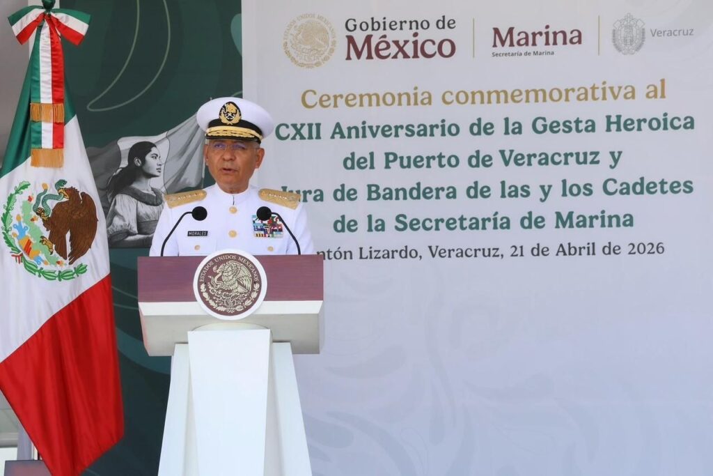 Acompañada por el secretario de Marina, Raymundo Pedro Morales Ángeles, la titular del Ejecutivo Federal destacó a la entidad como bastión histórico de la defensa nacional y símbolo de la resistencia del pueblo mexicano; recordó que esta fecha rememora la gesta del 21 de abril de 1914, cuando cadetes, marinos y el pueblo veracruzano enfrentaron la invasión estadounidense.