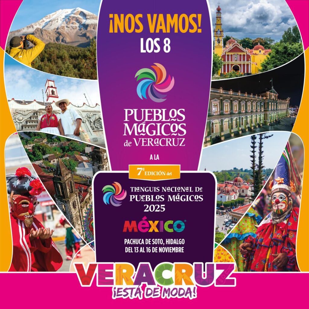Xalapa, Ver., jueves 13 de noviembre de 2025.- Los Pueblos Mágicos de Coatepec, Córdoba, Coscomatepec, Naolinco, Orizaba, Papantla, Xico y Zozocolco, participarán en la 7.ª edición del Tianguis de Pueblos Mágicos, que se llevará a cabo del 13 al 16 en la ciudad de Pachuca, Hidalgo.