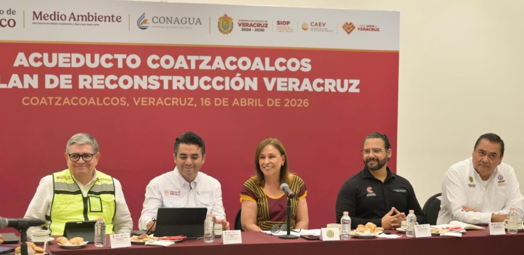 Coatzacoalcos, Ver., jueves 16 de abril de 2026.– La gobernadora Rocío Nahle García y el director general de la Comisión Nacional del Agua (CONAGUA), Efraín Morales López, presentaron el Plan Hídrico para Veracruz, con una inversión superior a 12 mil 200 millones de pesos en obras de reconstrucción y abastecimiento estratégico.