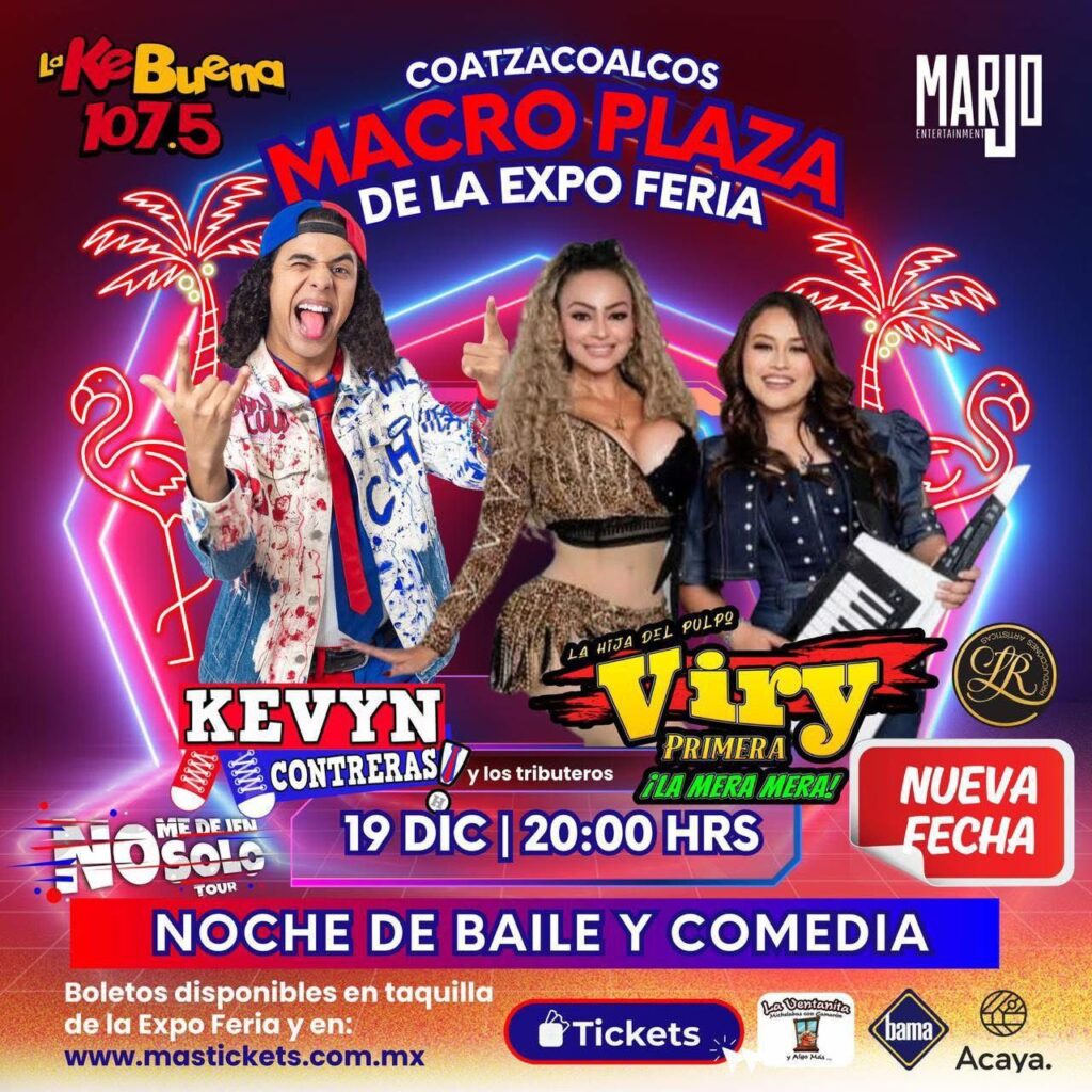 La Macro Plaza de la Expo Feria se llena de baile, comedia y mucha fiesta con Kevyn Contreras y Los Tributeros, y el gran show de Viry Primera “La Mera Mera”.